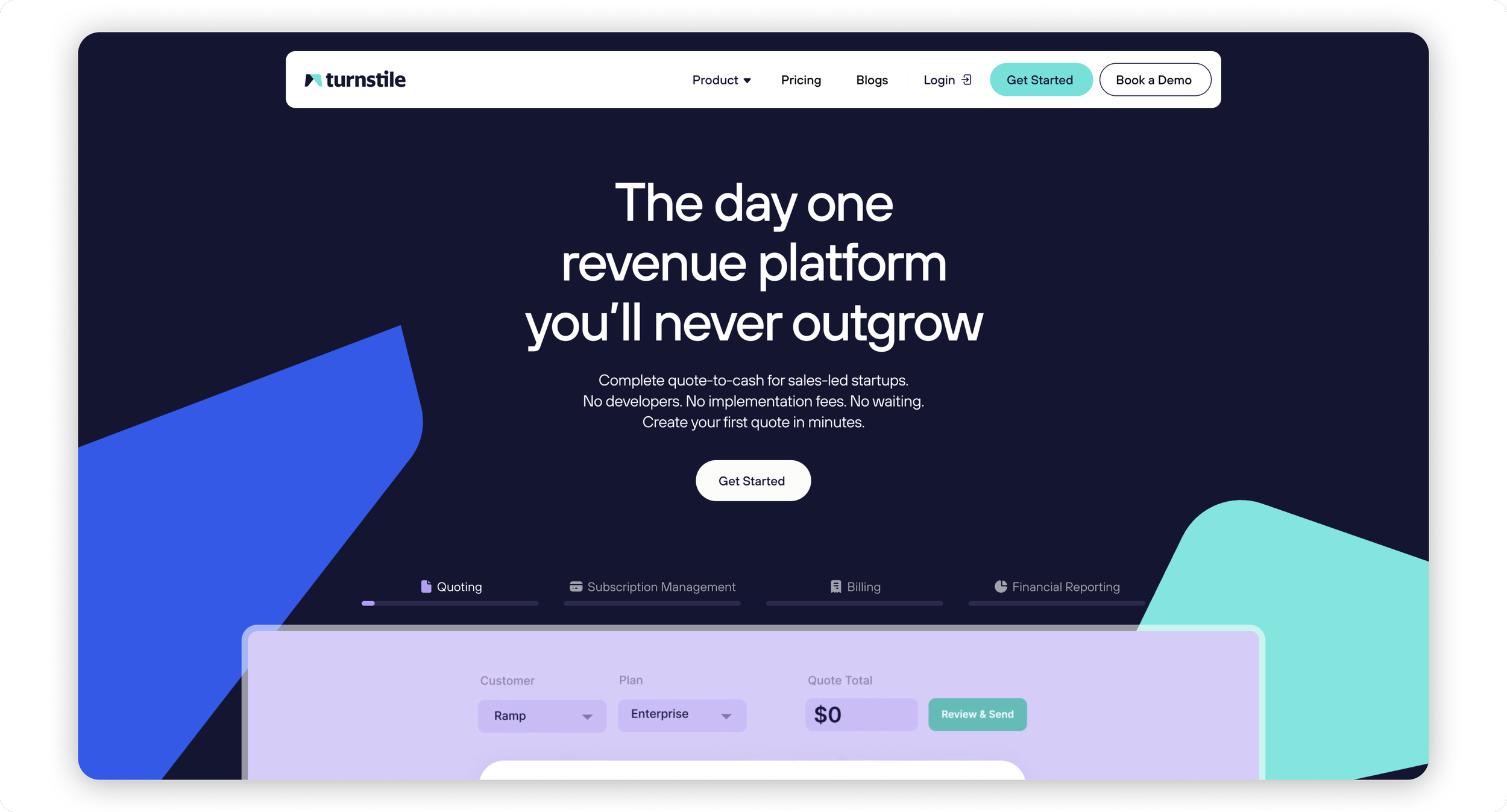 While at Turnstile, I led work to help simplify, centralize, and automate workflows across the quote-to-cash cycle, allowing sales teams to flexibly configure products & pricing, efficiently create quotes, and easily manage customer subscriptions—unlocking the power of the platform and creating a foundation for growth.
